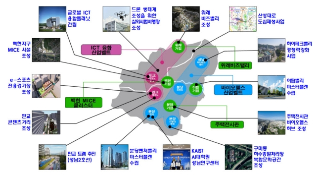 아시아실리콘밸리 성남 프로젝트는 정보통신기술(ICT)융합산업 벨트와 바이오·헬스산업 벨트, 백현 마이스(MICE) 클러스터 등 3대 권역을 묶어 첨단산업 허브로 육성하는 사업이다. 총면적은 498만㎡다. 미국 실리콘밸리(388만㎡)의 1.3배에 해당하는 면적이다.