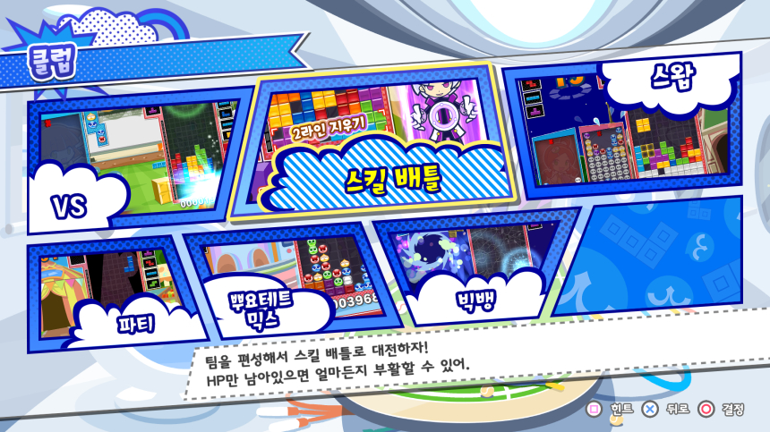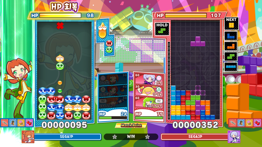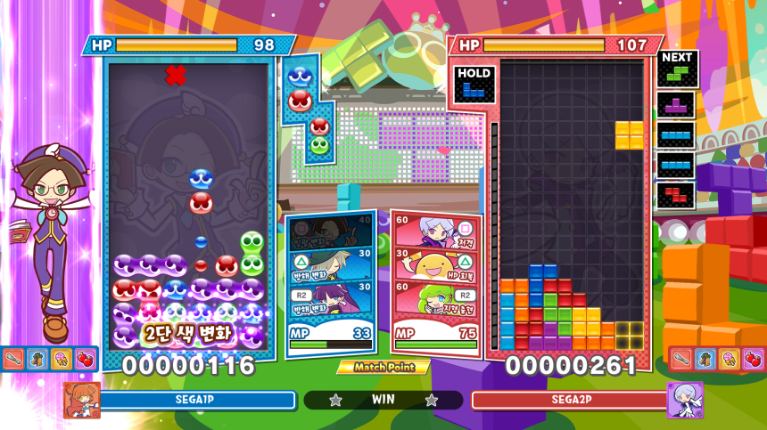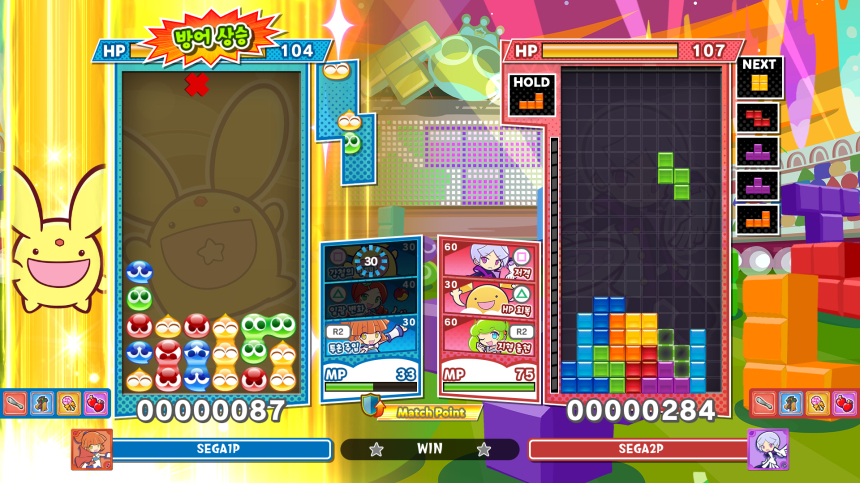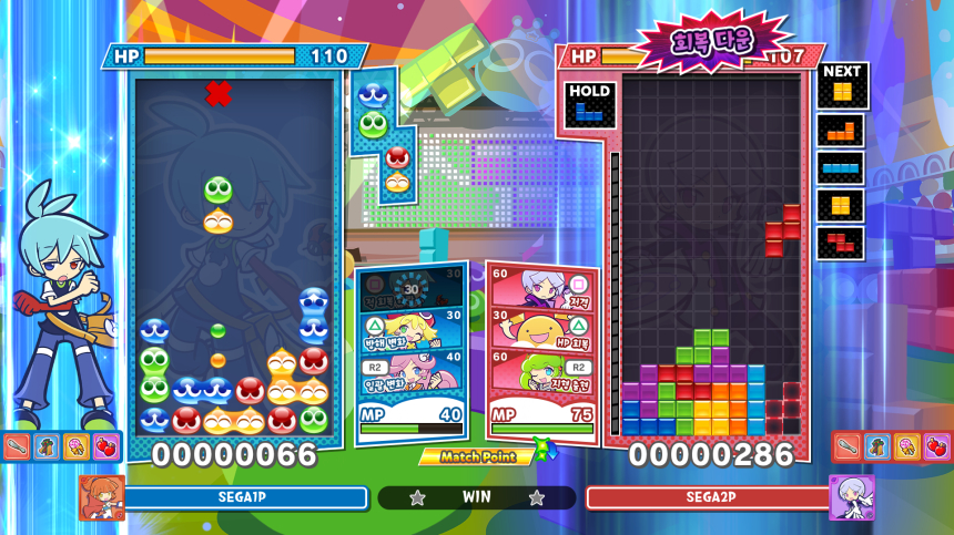 '뿌요뿌요 리그'에서는 뿌요뿌요끼리, '테트리스 리그'에서는 테트리스끼리 'VS' 룰로 대전할 수 있다.