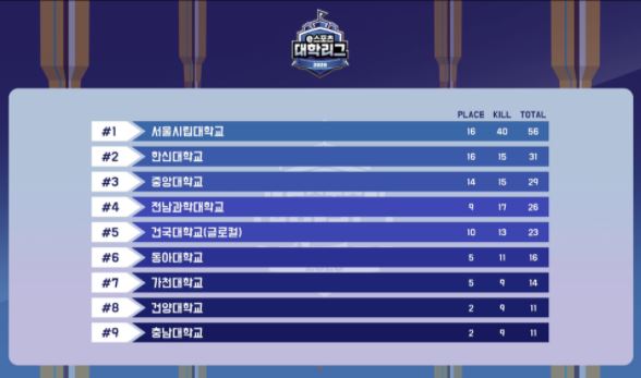 2020 e스포츠 대학리그, 전남과학대-서울시립대 올해 최고 대학 등극