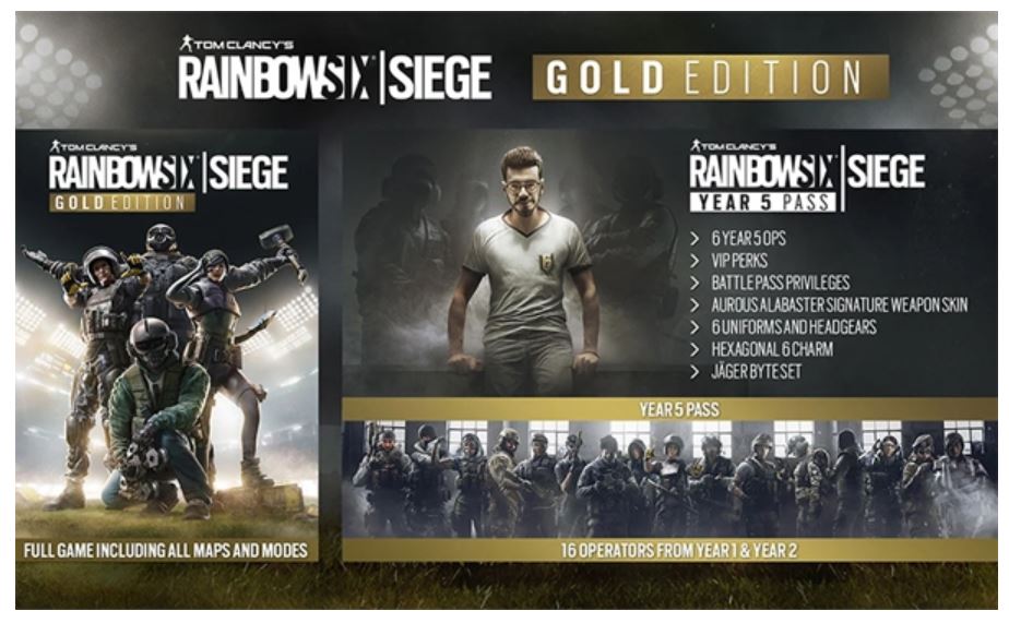 골드 에디션에는 16명의 오퍼레이터(Operator), 특수 유니폼, 스킨, 코스메틱, 그리고 올해 6명의 오퍼레이터를 모두 론칭할 수 있는 시즌패스 등이 포함돼 있으며, VIP 부스트, 더 빠른 배틀패스 진행 등을 제공한다.