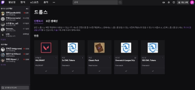 ◆ 시청자를 위한 드롭스 홈(Drops home)