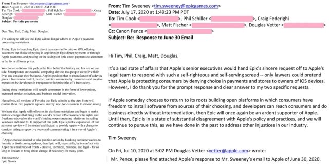 애플이 "팀 스위니 대표는 특별혜택을 요구했다"라고 폭로하자, 팀 스위니 대표가 "우리뿐만 아니라 모든 개발자와 소비자를 위해 풀어달라고 요구한 것"이라고 반박한 것이다.