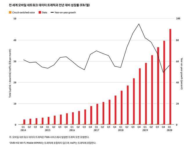 월 전체 데이터 트래픽 200TB→61만TB로 ‘폭증’