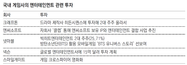종합 콘텐츠기업 꿈꾸는 게임사, 엔터업계로 영역확장 가속