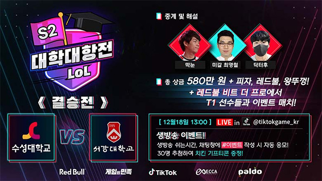 우승하면 T1과 이벤트매치! 틱톡 대학대항전 결승전 18일 개최